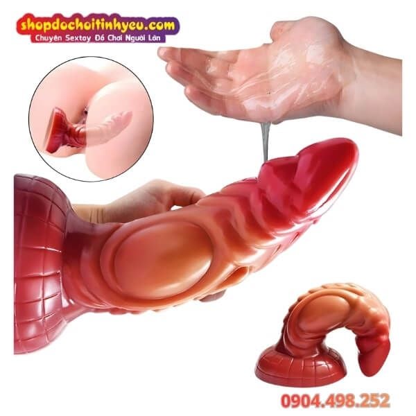 Bước 2: Sử dụng Gel bôi trơn: Vì sản phẩm có kích thước "siêu khủng" và nhiều điểm lồi lõm ma sát, bạn nên thoa một lượng lớn gel bôi trơn gốc nước lên cả sản phẩm và âm đạo để mọi chuyển động trở nên trơn tru và đê mê hơn.