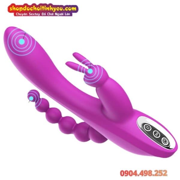 Mô Tả Máy Rung Ba Điểm Có Đầu Phụ Tai Thỏ Kèm Chuỗi Hạt Nhét Lỗ Nhị